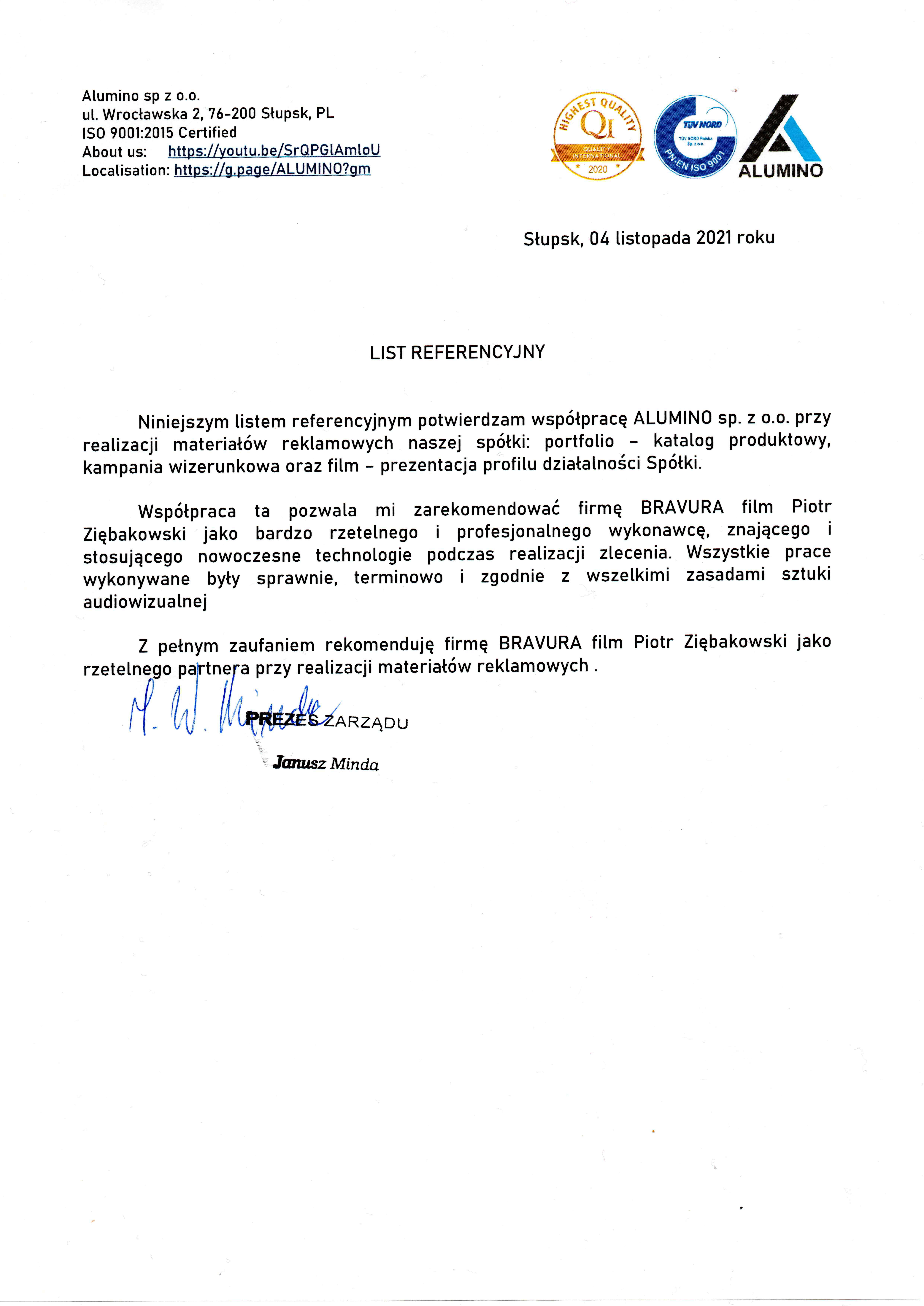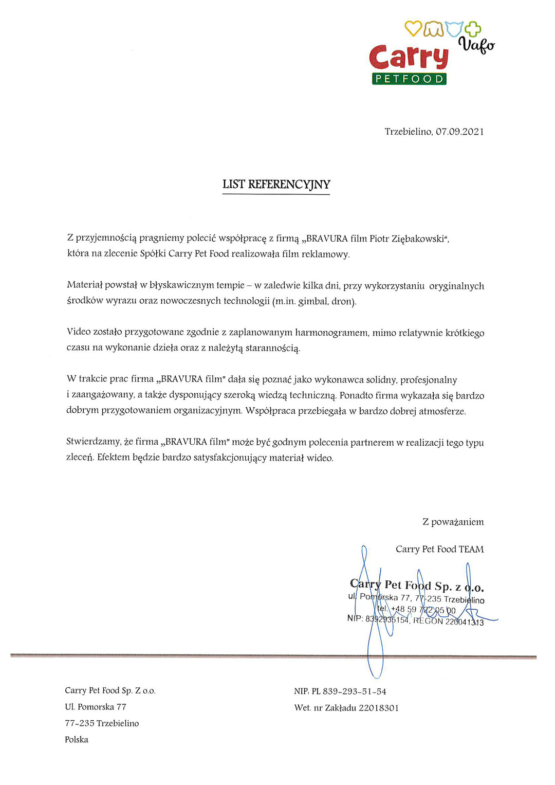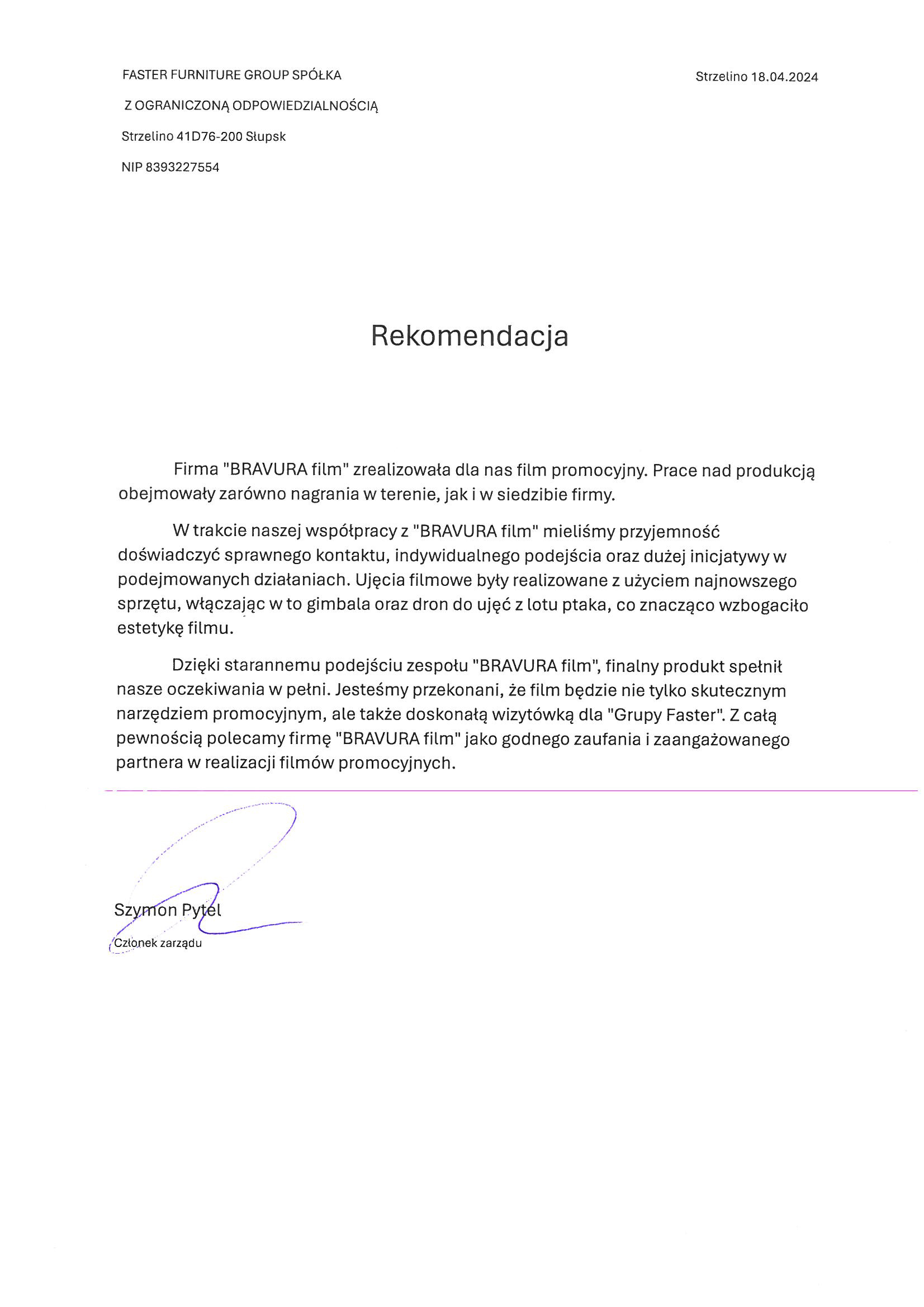 Jesteśmy dumni z tego, że nasi klienci doceniają nasze kompetencje, ale także sam przebieg współpracy, są zadowoleni z naszego działania, naszych produkcji filmowych. Polecają korzystanie z naszych usług i pozostają naszymi Klientami przy kolejnych realizacjach video. Dziękujemy za zaufanie!